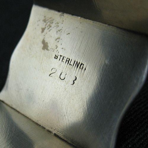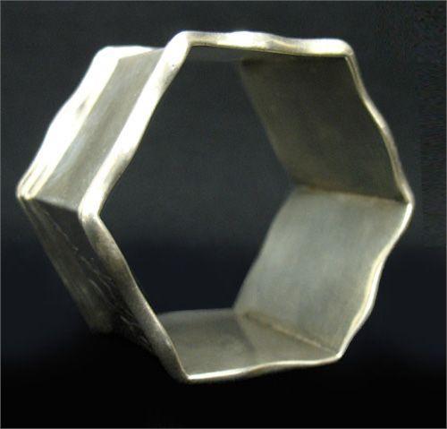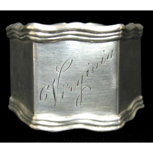 Sterling silver six sided napkin ring with undulating border top and bottom; inscribed Virginia; stamped sterling 263; C.1900; 1 1/4 inch high x 1 3/4 inch diameter; 1 oz. (no visible defects)