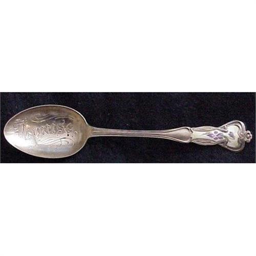 <tr><td><font size="2" face="Arial, Helvetica, sans-serif"><strong><font color="#000033">Title:</font></strong>Sterling souvenir spoon: Louise enamel</font></td></tr>