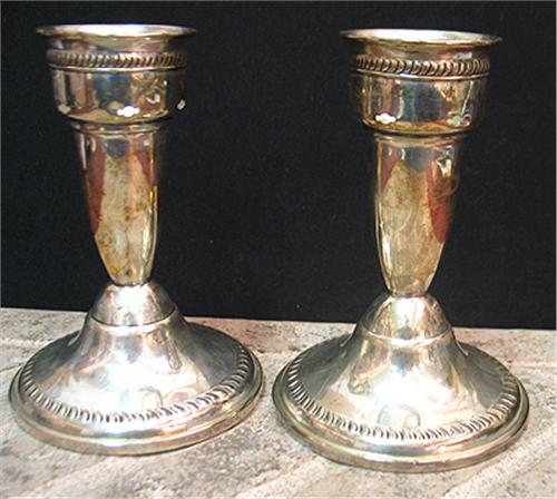 Sterling weighted candlesticks the tallest is 5" no monograms