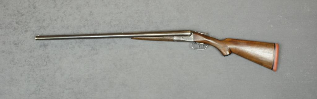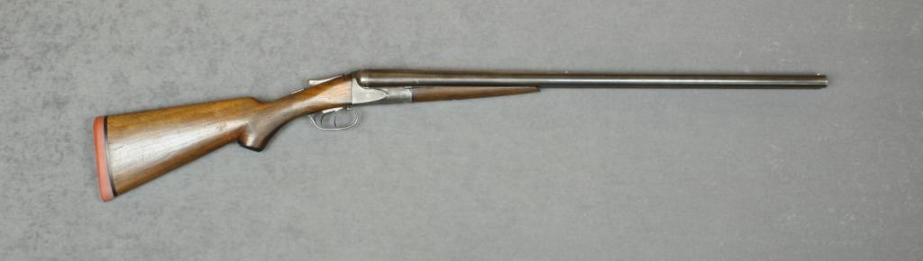 Sterlingworth SxS concealed hammers shotgun, 12 gauge, 28” barrels, blue and case hardened finish, checkered wood stocks, #73658. This gun is in overall very good condition showing a plum brown patina onbarrels and slight traces of case colors on the receiver, very good bores, crisp actions, wood is overall good showing wear and scattered nicks and mars from carry and storage; added Decelerator red hard rubberbutt pad. Est.: $350-$700.
