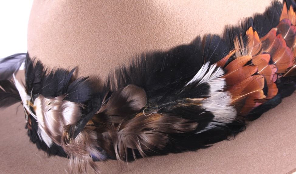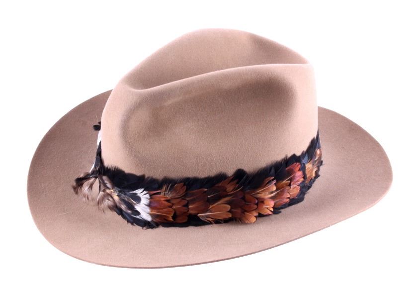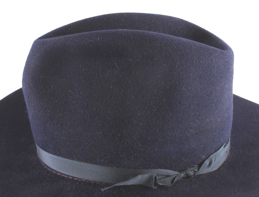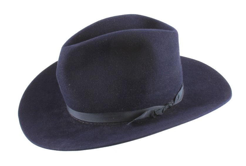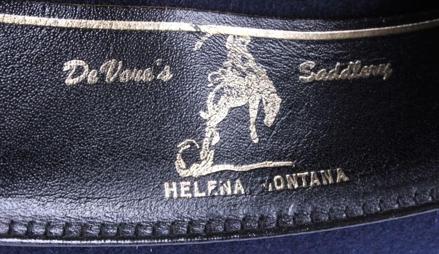 This is a pair of Stetson hat. The blue cowboy hat is from DeVore's Saddlery in Helena, Montana and is marked "XXXX Stetson". The other hat is marked "Hammer & Lewis San Jose, Cal.". Both Stetson hats are in good condition. They are both size 7 1/4".