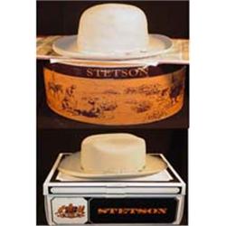 Stetson Hats. 4X Stetson Hat in box. Belonged to Charlie Beil (d.1976), with newspaper article about C.M. Russell's hearse featuring image of Beil in the funeral procession. Together with 3X "The Open Road" Stetson Hat in box. Never worn. Estimate $400-$500.
