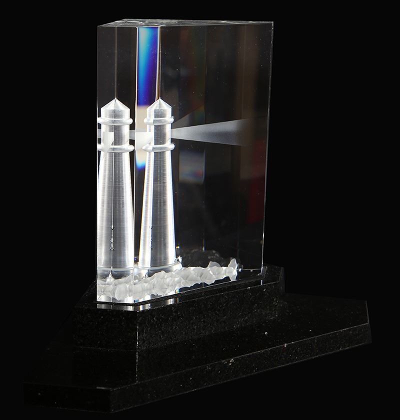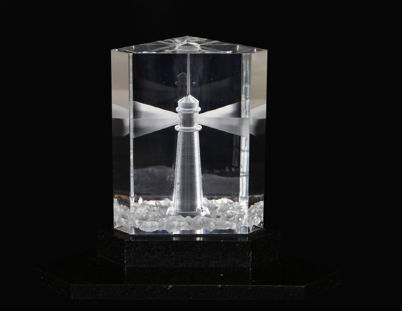 Steuben Beacon of Light, Lighthouse Etched Crystal Glass Prism