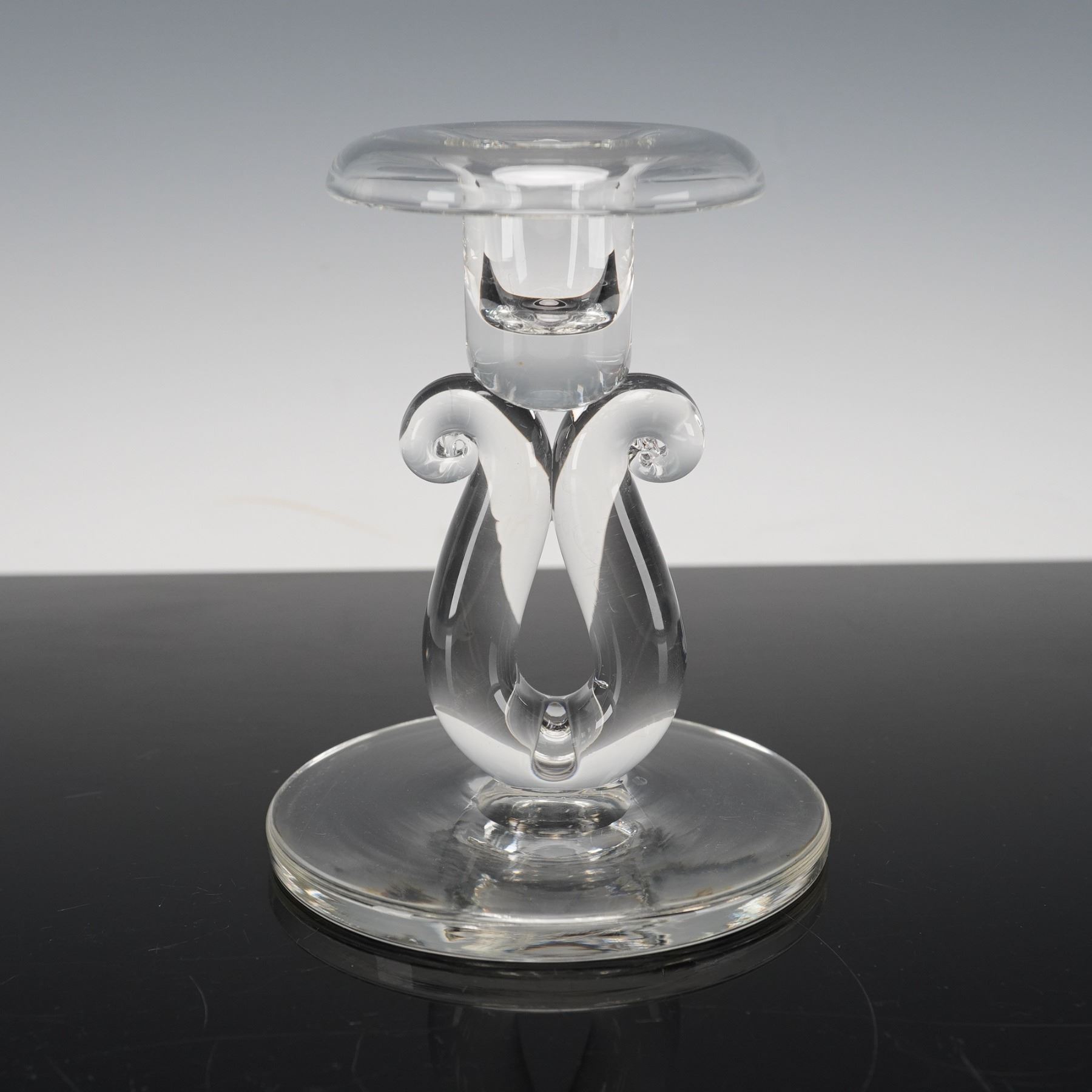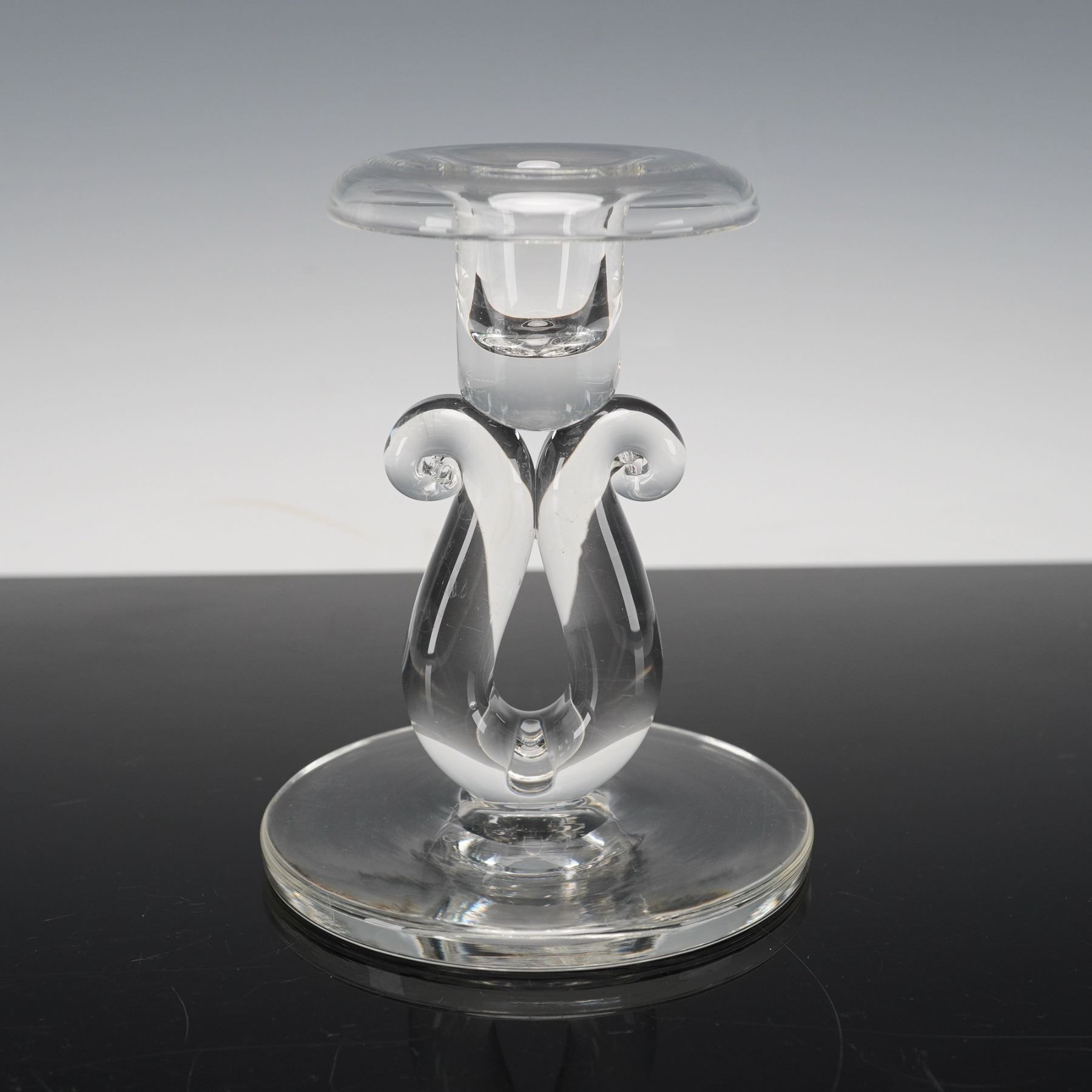 Steuben Clear Crystal Candle Holder, Scroll-Shaped Stem