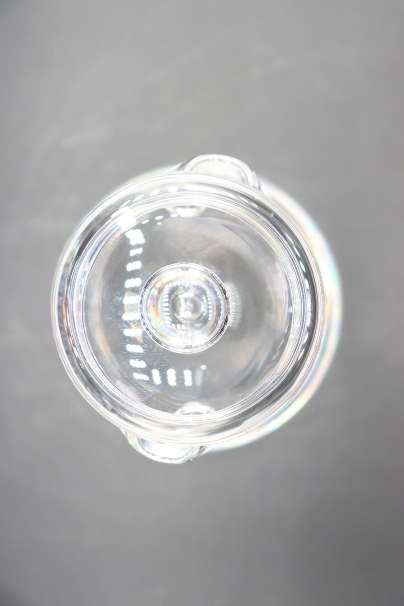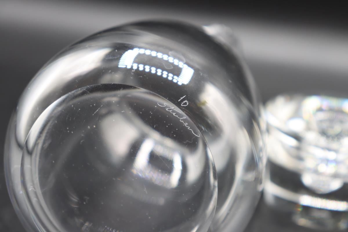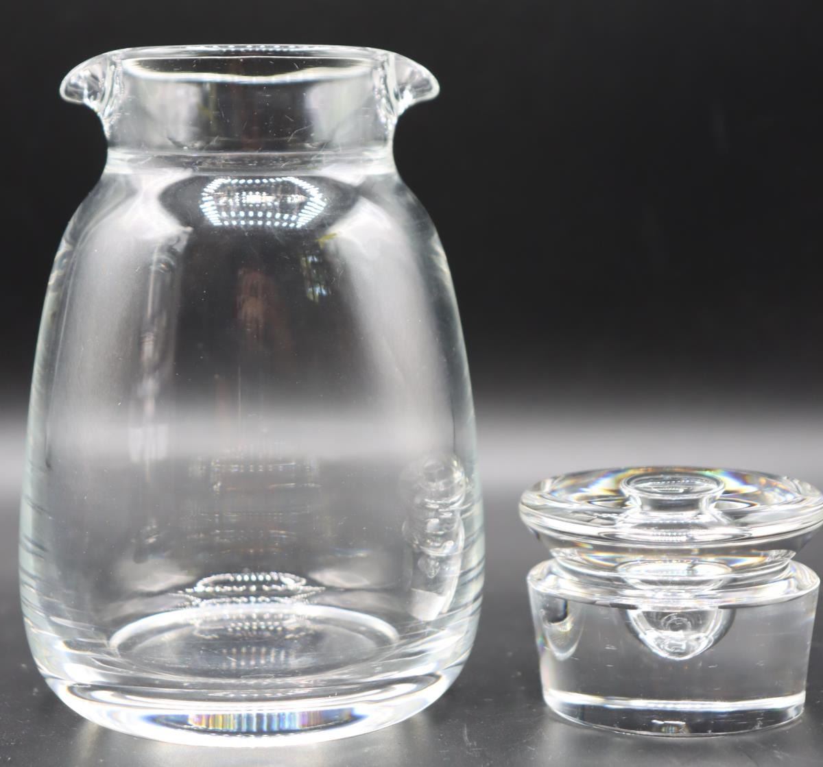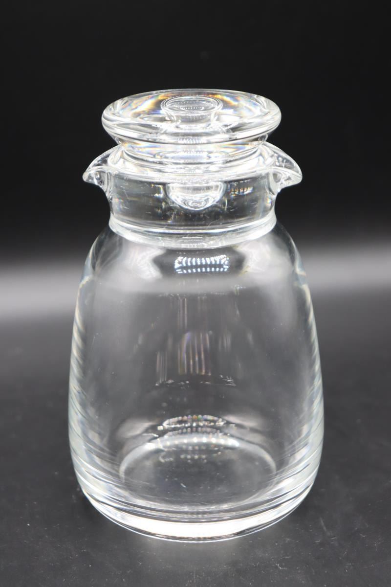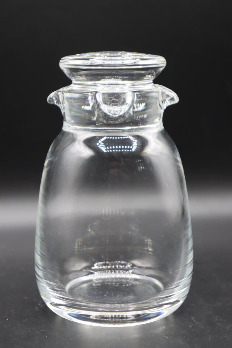 Steuben Clear Crystal Cocktail Shaker, signed. Tear drop double spot. 4 x 4 1/6 in.