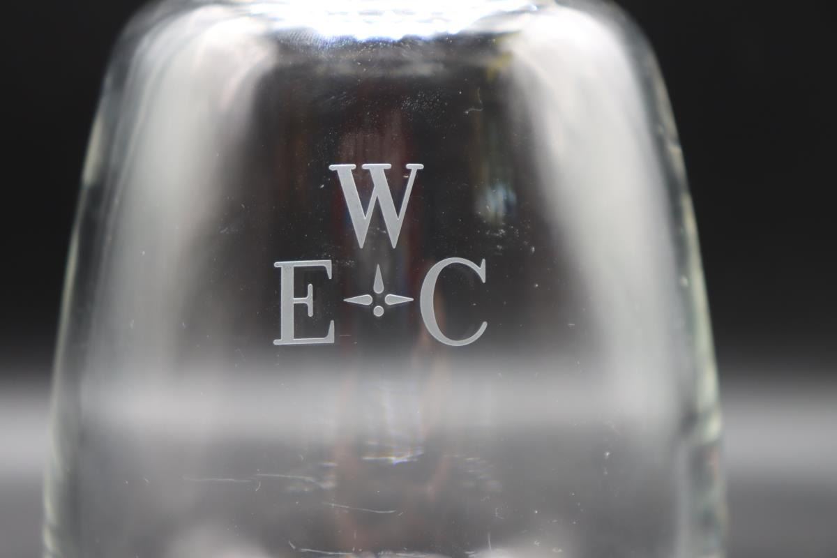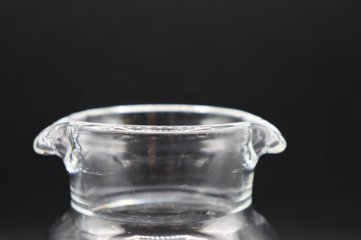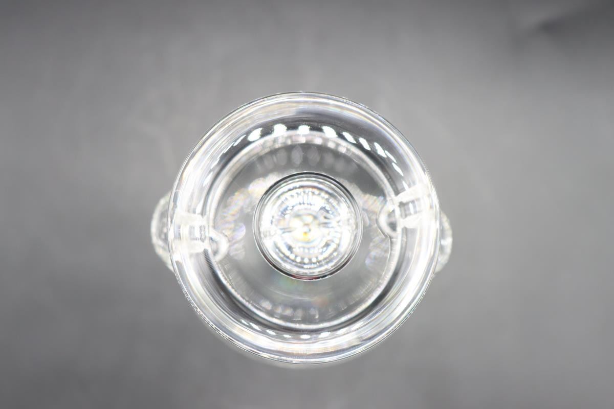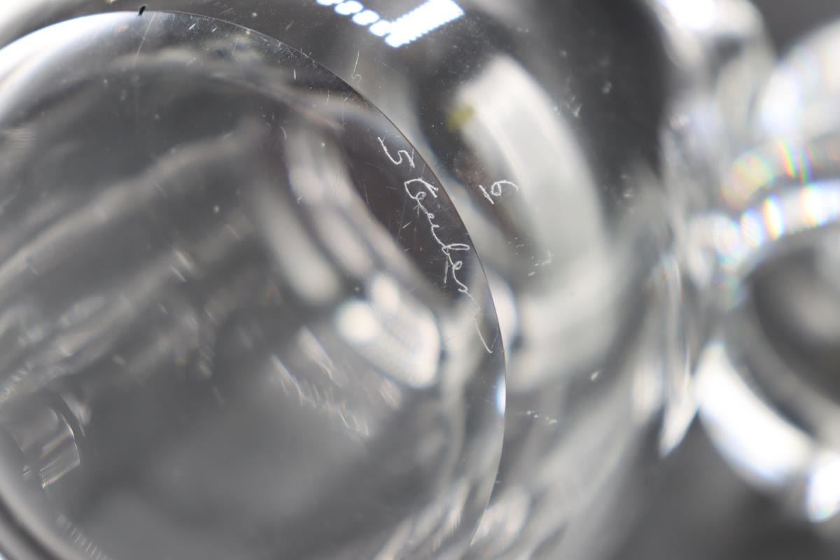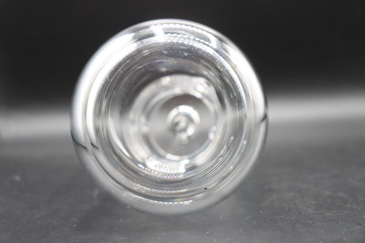 Steuben Cocktail Shaker, signed. Double Spout tear drop. Initialed on one side. 4 x 4 x 6 1/2 in.