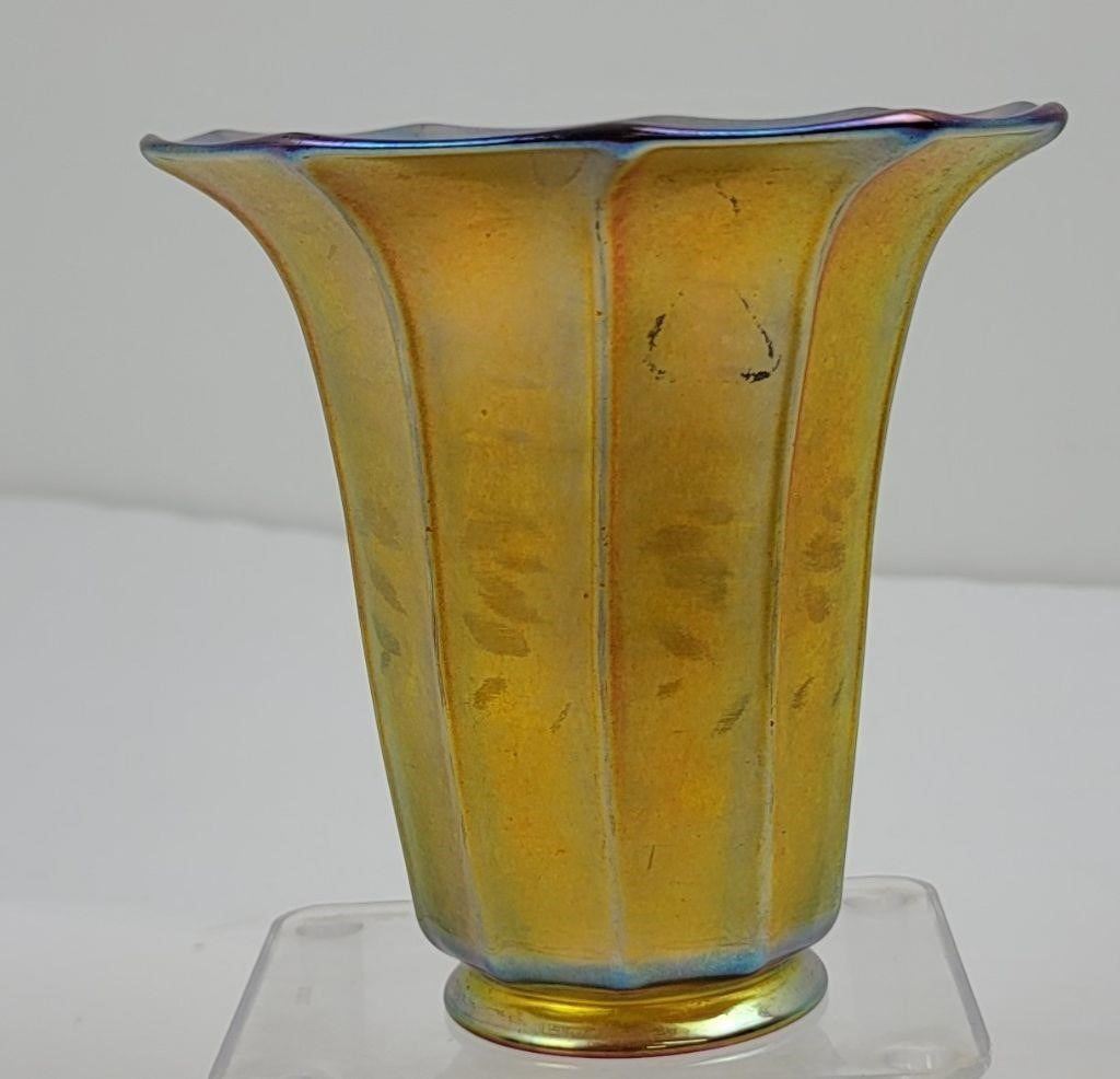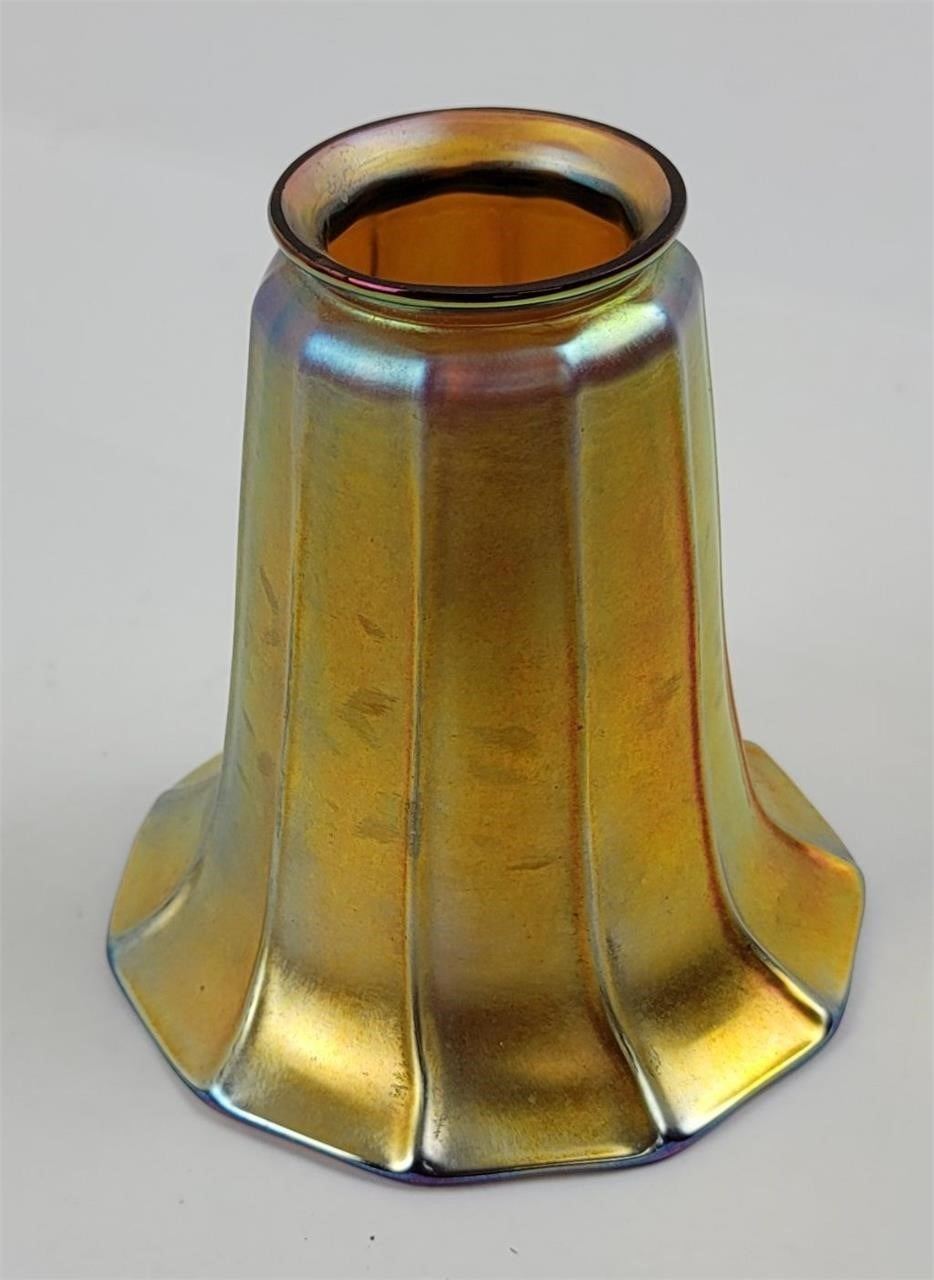 5" tall, 5" diameter. No chips or cracks. Nice shade.