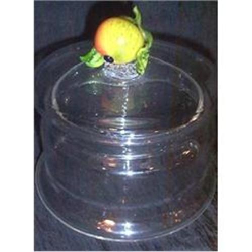 </font></strong>This extremely STUNNING and quite Fantastic Hand Blown Steuben Crystal Covered Candy or Bon-Bon dish has a wonderful applied finial made in the shape of fruit and leaves. This Steuben RARE piece is in SUPERIOR condition with no chips, cracks, or dings and it measures 4.25" in diameter and stands about 4.50" tall to the top of its finial. It is unmarked but definitely Steuben.</font>