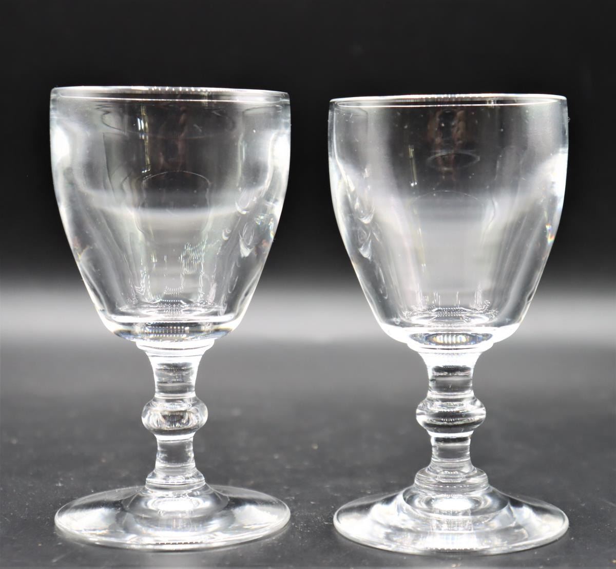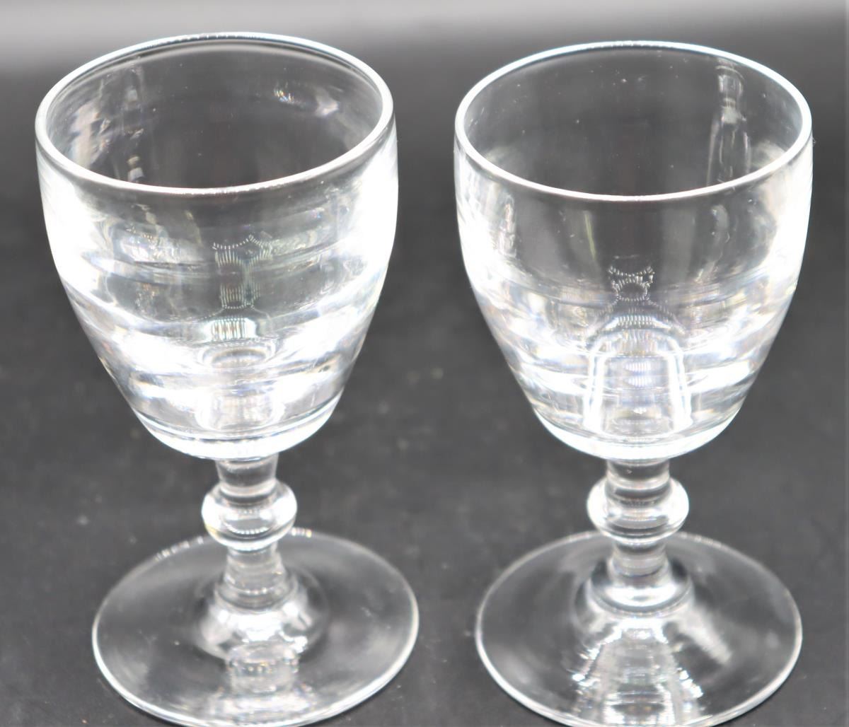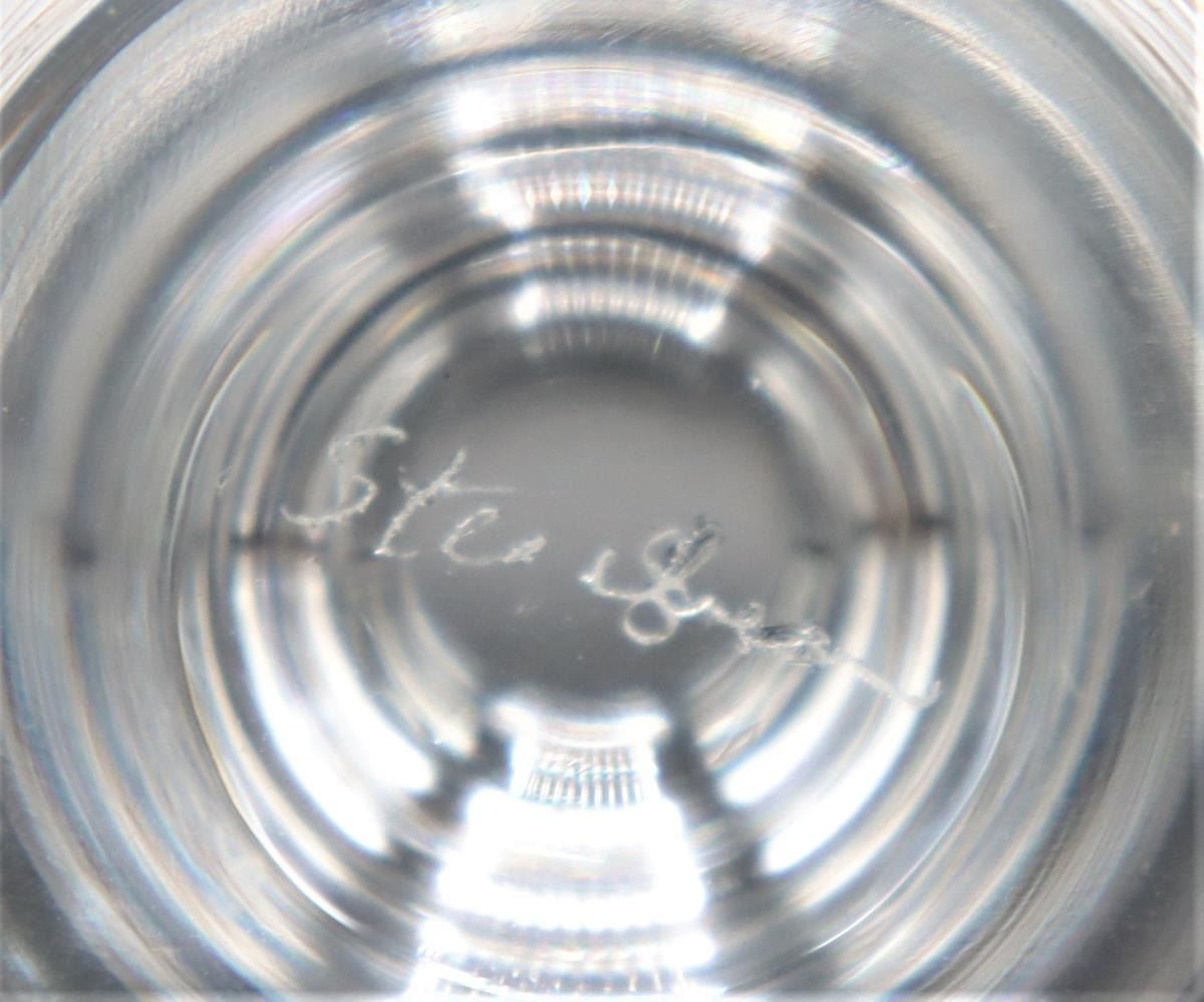 Steuben port wine goblets, signed. 2 1/2 x 2 1/2 x 4 1/2 in.