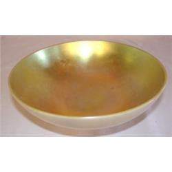 Steuben gold aurene iridescent calcite bowl. 3 1/2" tall and 9" dia. At opening.