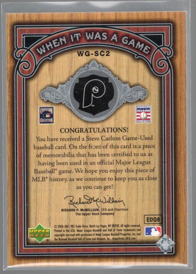 Steve Carlton Game-Used Pinstripe Patch /75!! 2006 Upper Deck When it was a Game #WG-SC2