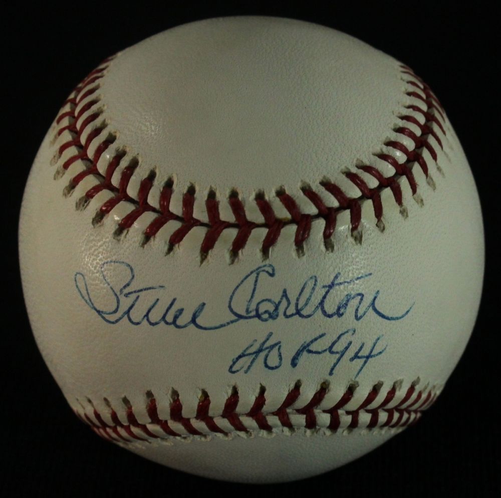 Official National League Baseball. Hand-signed and inscribed in blue ink by Steve Carlton (Phillies). The autograph includes an official MLB hologram for authenticity purposes.