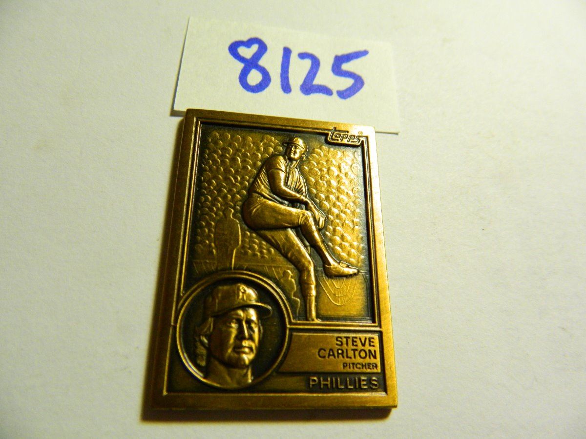 THIS IS A REPLICA OF STEVE CARLTON'S CARD # 70 IN THE  REGULAR  792 CARD  1983 TOPPS SET.    THIS ITEM WAS DISTRIBUTED BY TOPPS  AS A PREMIUM  FOR THE DEALERS WHO BOUGHT CASES OF THE 1983 TOPPS TRADED SETS.  MEASURES 1 1/4" WIDE BY 1 3/4" TALL.