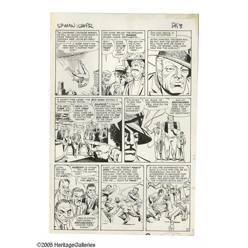 <B>Steve Ditko - Amazing Spider-Man #10, page 3 Original Art (Marvel, 1964).</B></I> The Big Man is taking over the city's rackets from here on out, and if anyone has anything to say about it, they can talk to the Enforcers! If it's Silver Age Marvel you're salivatin' for, look no further, web-heads! Stan Lee and Steve Ditko deliver "big time" on the page that introduced Marveldom to "The Enforcers" -- the Ox, Fancy Dan, and Montana! The image area of the art is 12.5" x 18.5", and the art is in Excellent condition.