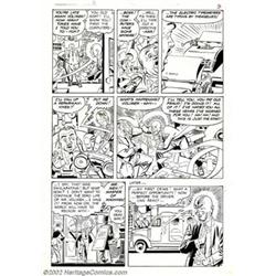 Steve Ditko - Original Art Panel Pages from Thunder Agents #18 Page 3 (Tower, 1968). Steve Ditko is one of the most important comic artists from the Silver Age. His highly recognizable art has graced the pages of nearly every major title of the time. Whether working on Amazing Spider-Man and Strange Tales for Marvel, Beware the Creeper and Hawk and Dove for DC, or horror and superhero titles for Charlton, Ditko had the ability to take characters and make it seem as if he were the definitive artist for all of them. His art has a clean and precise quality yet looks as if it were easily poured onto the surface of the page. His action sequences fill panels with fluid characters that seem to glide through the composition with the grace of a ballet dancer. This page is filled with the exaggerated facial expressions and swirling panel stages that Ditko is famous for. It measures approximately 14"x19.75" with an image area of approximately 12"x18" and is in very nice condition with almost no white out. Important notice: We expect to be auctioning lots at the rate of 200-250 per hour. Sometimes eBay Premier live bid software cannot keep up with that pace, so we strongly recommend that you place a realistic proxy bid now as insurance to avoid disappointment. Also please note that all Heritage/CAA lots purchased through eBay Premier carry a 20% Buyer's Premium. Please make sure you read the Terms and Conditions.