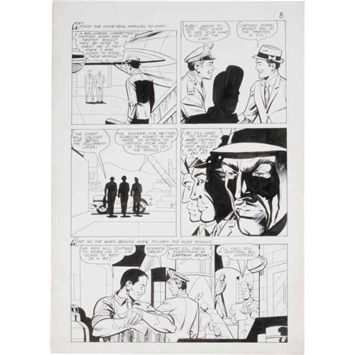 <B>Steve Ditko and Frank McLaughlin - Captain Atom #89, page 7 Original Art (Charlton, 1967).</B></I> Alec Rois has his sites set on stealing a military missile, and neither Captain Atom, nor the villain known as Thirteen, have a got a "Ghost" of a chance to stop him! This intriguing page from 1967 has an image area of 12" x 18", and the condition is Excellent.