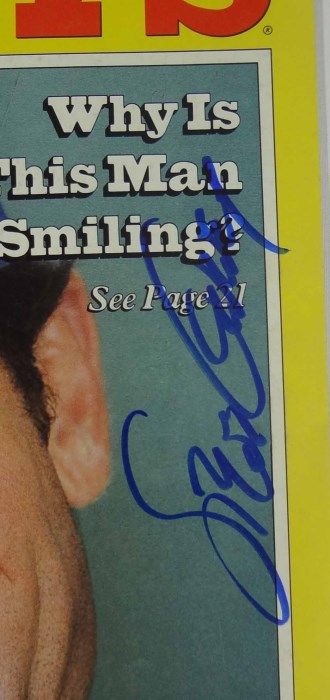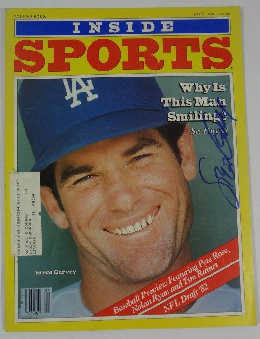 "Why Is This Man Smiling?" Baseball Preview Featuring Pete Rose, Nolan Ryan and Tim Raines / NFL Draft 1982. Signed in blue sharpie by Steve Garvey. COA. Est. $45.00 - $55.00
