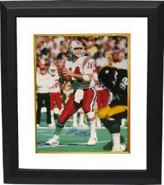 Grogan was selected in the fifth round in the 1975 NFL Draft by the New England Patriots. At the time of his retirement, Grogan lead the franchise as the all-time leader in passing yards (26,886) and passing touchdowns (182). Statistically, Grogan's best season was the Patriots 1979 season, when he completed 206 of 423 passes for 3,286 yards and 28 touchdowns, rushing for 368 yards and 2 touchdowns. His 28 touchdown passes led the league.Steve Grogan has hand autographed this New England Patriots 16x20 Photo. Sports Images Hologram and Certificate of Authenticity from Athlon Sports. Custom White Mat and Premium Black Frame as shown.