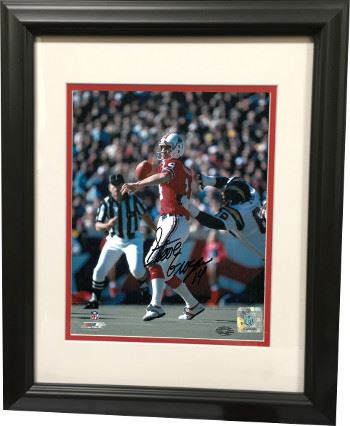 Grogan was selected in the fifth round in the 1975 NFL Draft by the New England Patriots. At the time of his retirement, Grogan lead the franchise as the all-time leader in passing yards (26,886) and passing touchdowns (182). Statistically, Grogan's best season was the Patriots 1979 season, when he completed 206 of 423 passes for 3,286 yards and 28 touchdowns, rushing for 368 yards and 2 touchdowns. His 28 touchdown passes led the league.Steve Grogan has hand autographed this New England Patriots 8x10 Photo. Certificate of Authenticity from Athlon Sports Collectibles. Custom Red & White Mat and Premium Black Frame as shown.