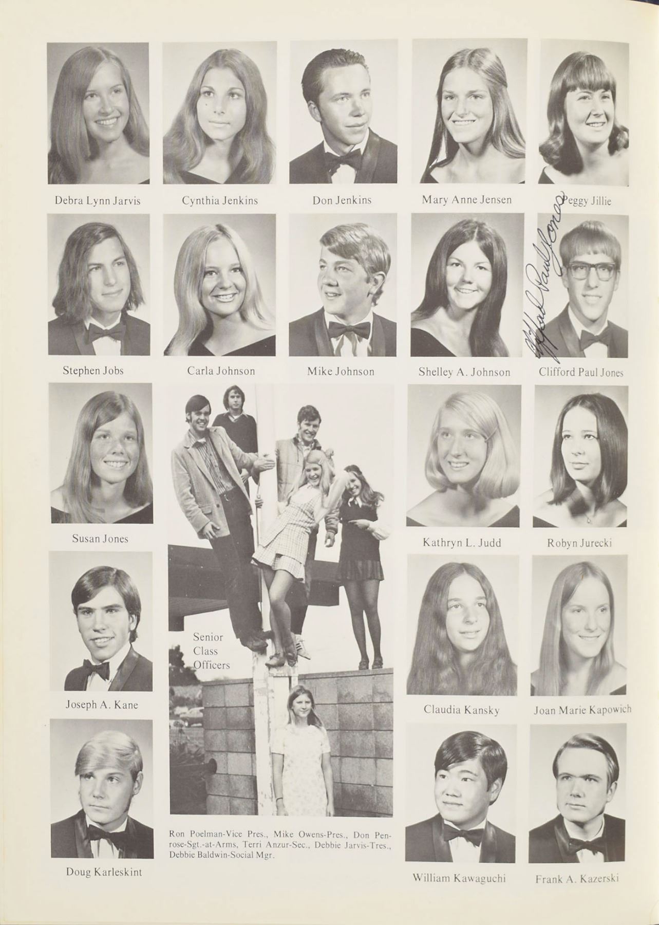 Scarce hardcover 1972 Pegasus yearbook from Steve Jobs’ senior year at Homestead High School in Cupertino, California, 8.75 x 11.25, 201 pages. Jobs is pictured as a member of the graduating senior class on page 24; Chrisann Brennan, Jobs’ girlfriend and the mother of his first child, is pictured as a junior on page 47; and Bill Fernandez, a close friend of Jobs and Apple employee No. 4, is pictured as a senior on page 19. The book bears multiple signatures and inscriptions to the original owner, but is not signed by Jobs; faculty signers include Carol Hughes (Steve Jobs's high school counselor), Phil Sedgley (Dean of Boys), Warren Bryld (Homestead High principal), and John ‘Bill’ George (Homestead High vice principal). Includes the rare Pegasus 1972 Supplement that was given to student body card holders a few months after graduation. In fine condition.