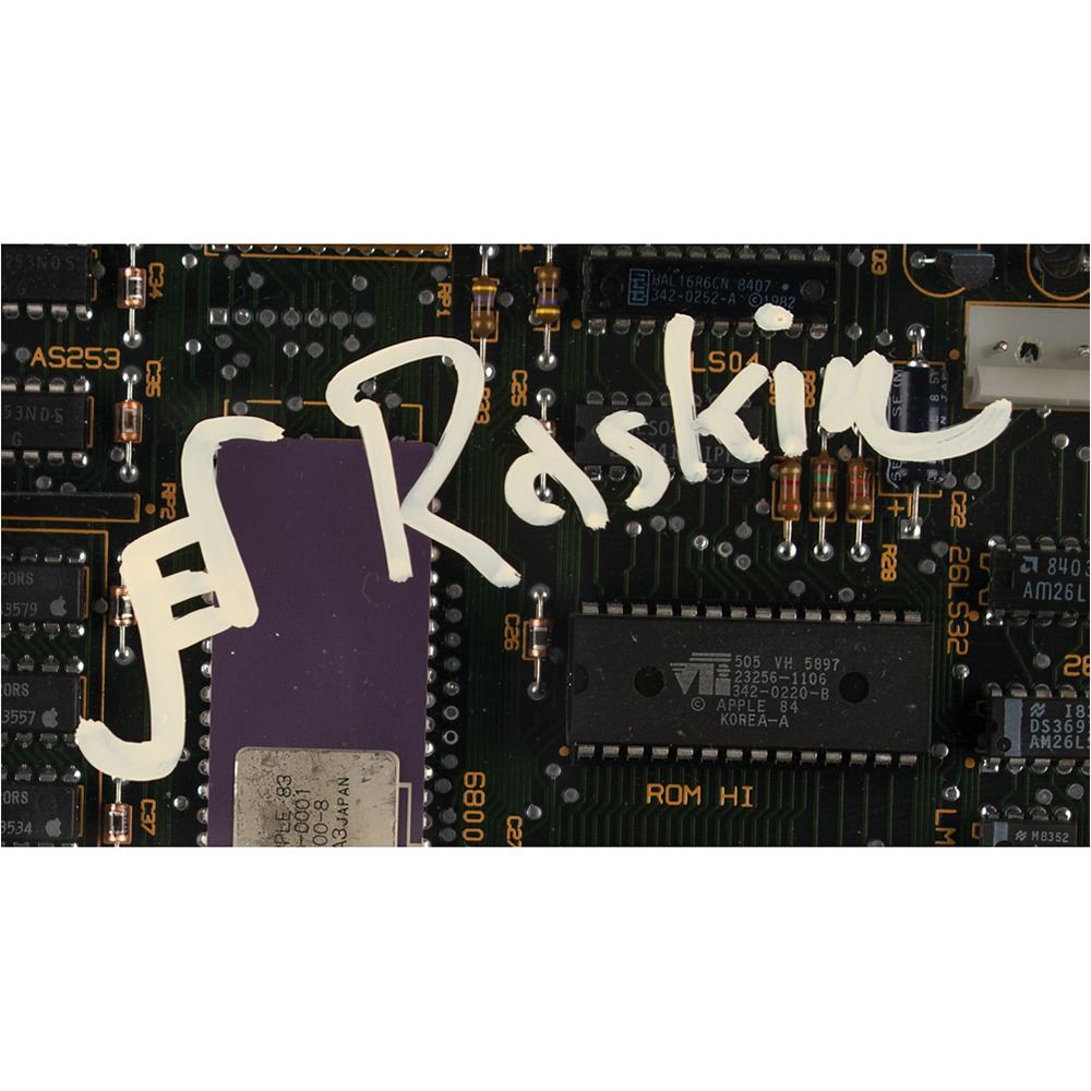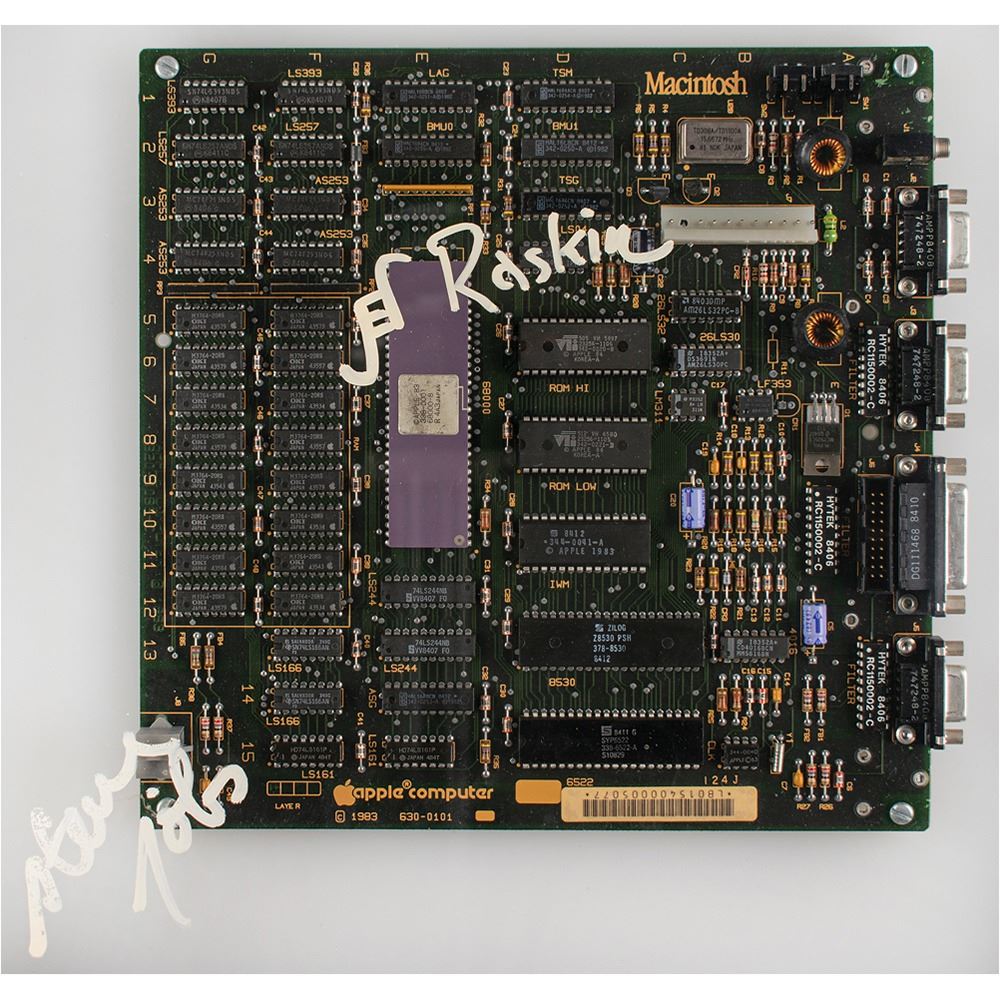 Then, the Jobs-signed motherboard hung on the wall of his study at home until about 1991, when he traveled to San Francisco to visit friends at Stanford. While on the trip, he was able to arrange a meeting with Jef Raskin, who is known for starting the Macintosh project at Apple in 1979. After their lengthy discussion of his work, engineering, and the future of education, Raskin asked: 'So, what's in the box?' He pulled out the framed motherboard and asked Raskin for his autograph. Without commenting on Jobs' prominent signature, Raskin said, 'I think I'll sign it over the main processor,' and wrote his artist's signature.