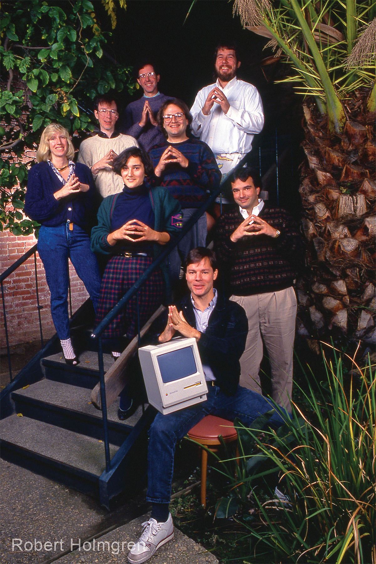 These signatures were obtained in person by Silicon Valley photographer Robert Holmgren, who in 1988 used this Macintosh Plus as a prop in a photo shoot in advance of the Macintosh five-year anniversary, with much of the original Macintosh team. At that shoot, he asked those present to sign the underside of the computer. Though Steve Jobs was not present at the session, Holmgren photographed him in 1993 and obtained his signature at that time; Kawasaki also signed at a later date. Many of these signatures are also famously found in embossed versions molded inside the hard plastic case, the result of a 1982 'signing party' of the original Macintosh team who, like artists, desired to sign their work.