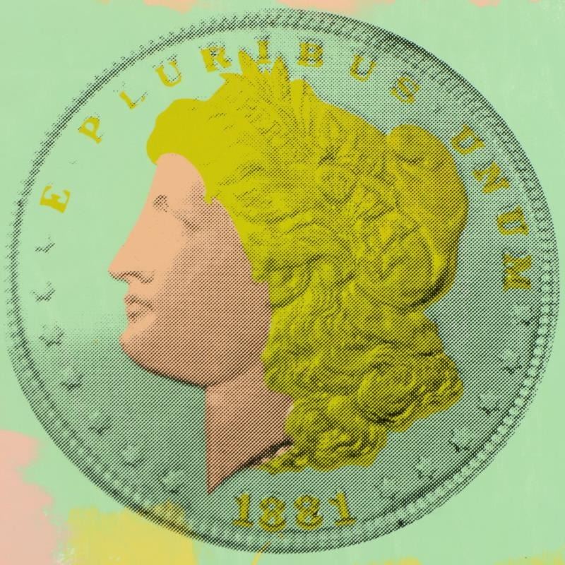 "1881 Coin" is a hand painted limited edition silkscreen on canvas by Andy Warhol protege Steve Kaufman (1960-2010). This piece is AP numbered 38/50 and hand signed inverso. Includes letter of authenticity. Measures approx. 12" x 12" (image).