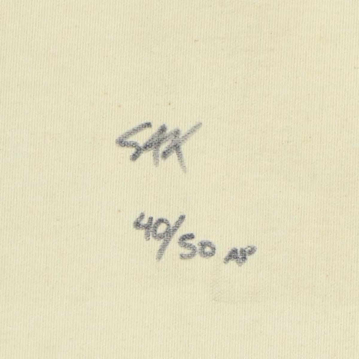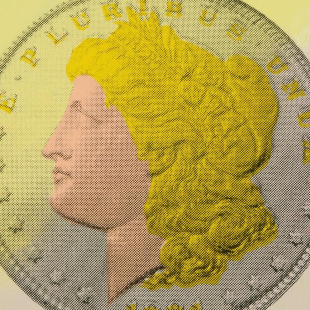 "1881 Morgan Dollar" is a hand painted limited edition silkscreen on canvas by Andy Warhol protege Steve Kaufman (1960-2010). This piece is AP numbered 40/50 and hand signed inverso. Includes letter of authenticity. Measures approx. 12" x 12" (image). Reference #: 224332