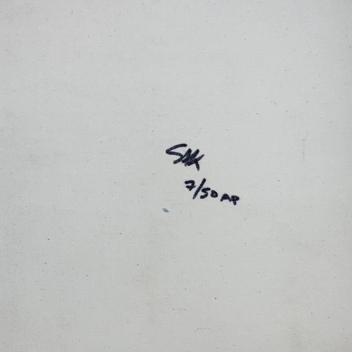 "1922 Liberty Peace Dollar " is limited edition hand pulled silkscreen unique mixed media on canvas by Andy Warhol protege Steve Kaufman (1960-2010). This piece is numbered and hand signed inverso and includes a letter of authenticity. As is common with Kaufman's works, this piece may have perceived minor flaws, but is in overall good condition. Measures approximately 15.5" x 14" before cropping. Reference #: 246750