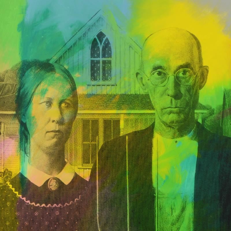 "American Gothic" is a hand painted limited edition silkscreen on canvas from an HC edition by Andy Warhol protege Steve Kaufman (1960-2010). This piece is hand signed inverso. Includes letter of authenticity. Measures approx. 36" x 48" (image).