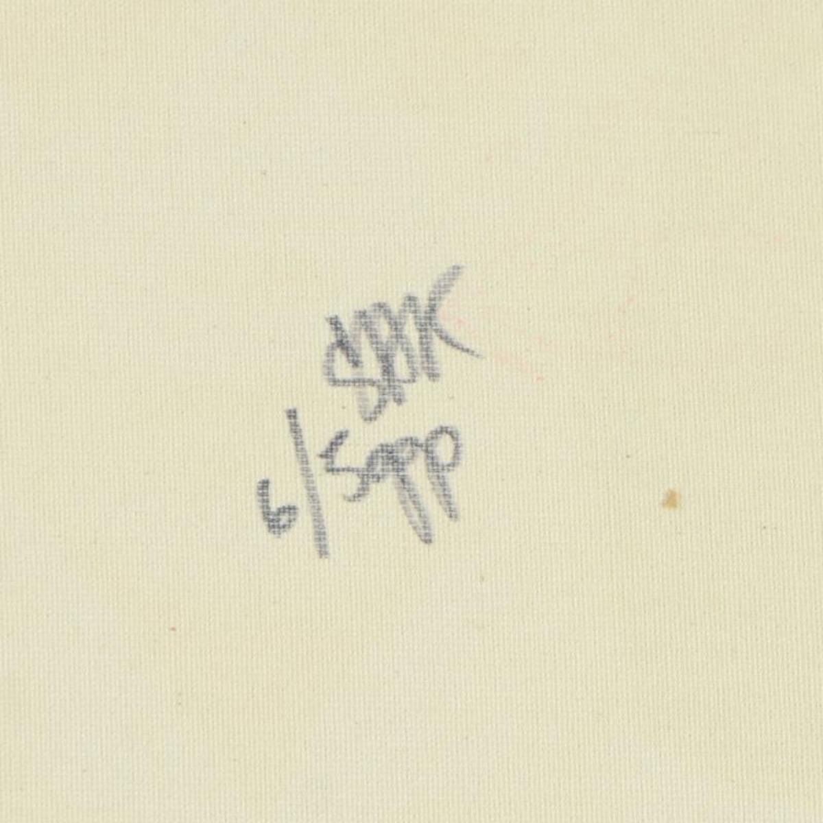 "Annie Lennox" is a limited edition silkscreen on canvas by Andy Warhol protege Steve Kaufman (1960-2010). This piece is PP numbered 6/50 and hand signed inverso. Includes Certificate of Authenticity. Measures approx. 16" x 16" (image). Reference #: 220168