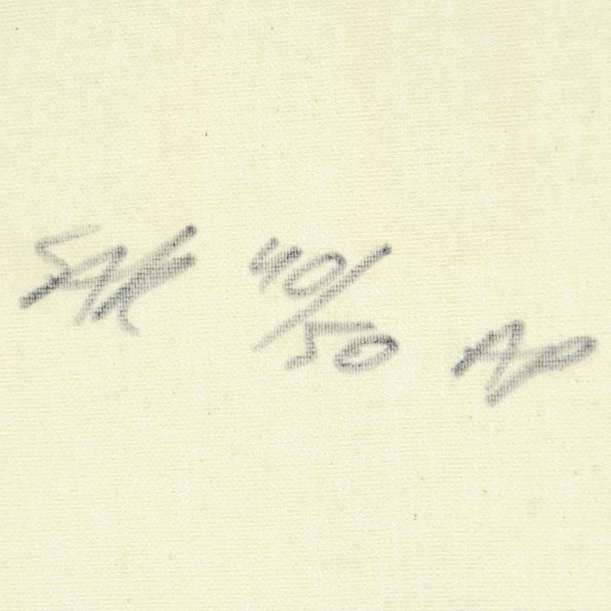 "Bada Bing" is a hand pulled limited edition silkscreen on canvas by Andy Warhol protege Steve Kaufman (1960-2010). This piece is AP numbered 40/50 and hand signed inverso. Includes Certificate of Authenticity. Measures approx. 46" x 24" (image). Please note: there are minor creases in the canvas that will likely be concealed when the piece is stretched. Reference #: 238307