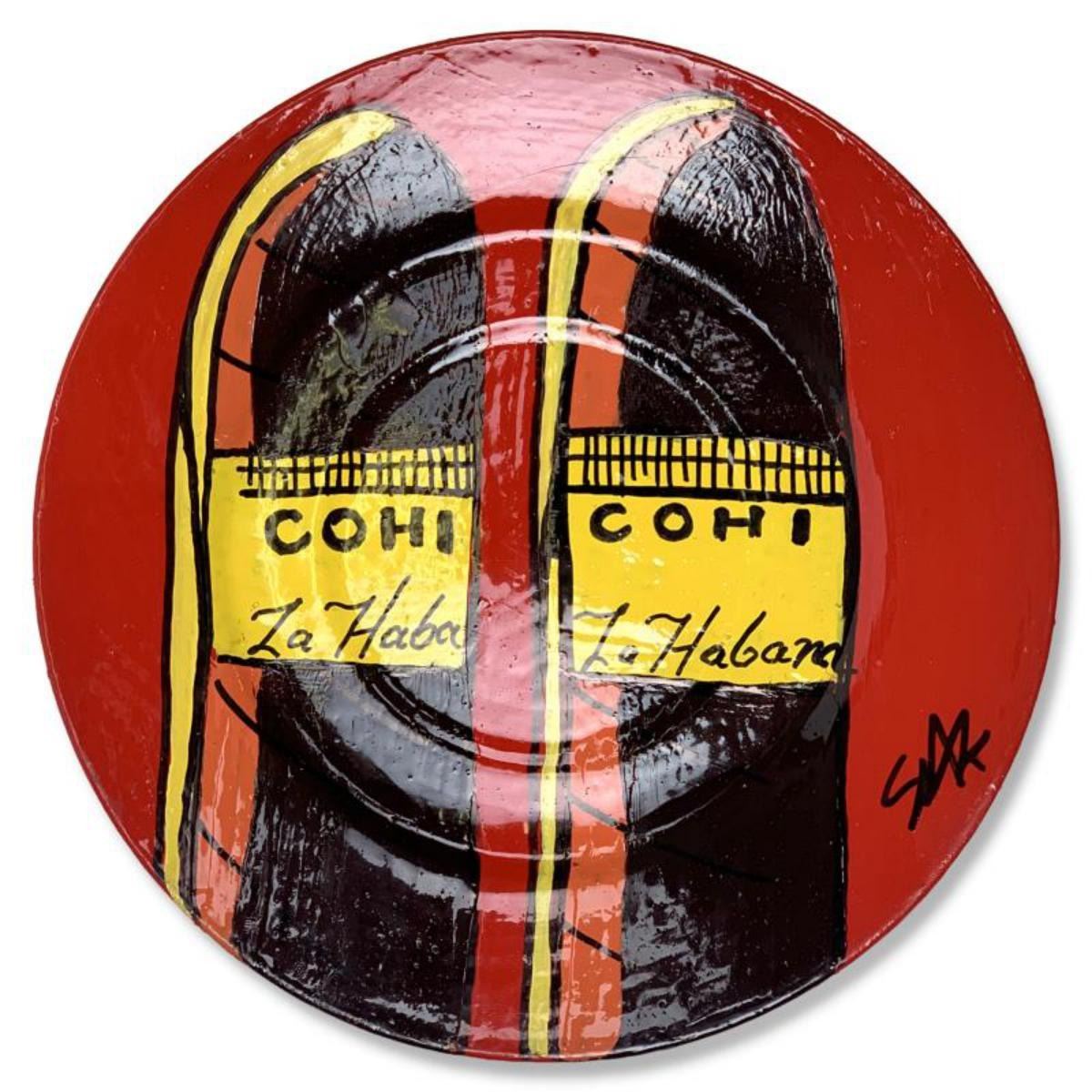 Steve Kaufman (1960-2010) "COHIBA" Hand Painted Plate, Hand Signed with Letter of Authenticity.