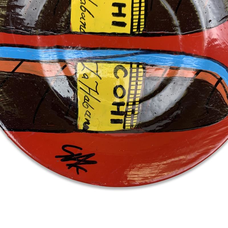 "COHIBA" is a hand painted plate by Steve Kaufman (1960-2010). This piece is hand signed by the artist and includes a letter of authenticity. As is common with Kaufman's works, this piece may have perceived minor flaws, but is in overall good condition. Measures approximately 5.75" (diameter).