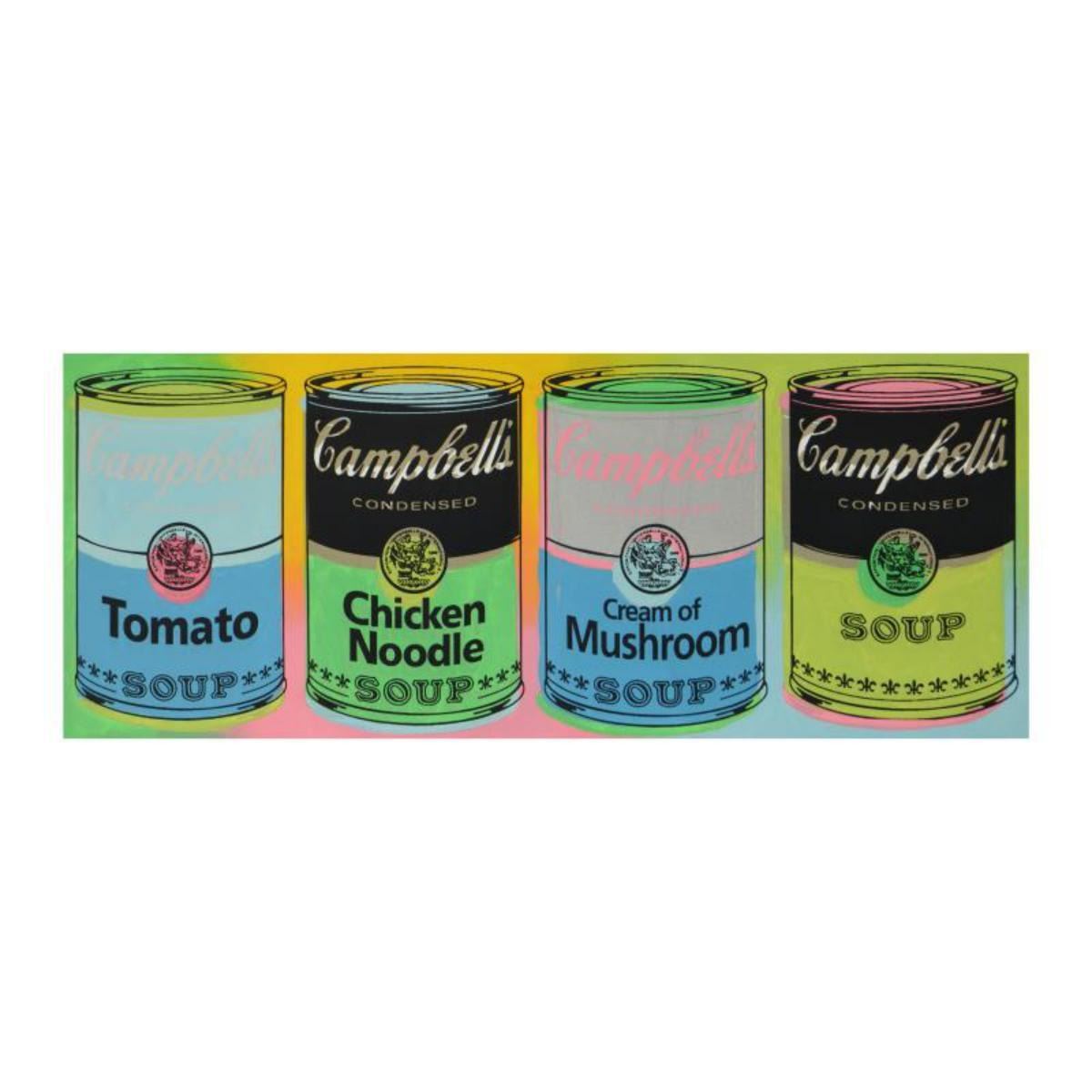 "Campbell's Soup Cans" is a hand painted limited edition silkscreen on canvas from an HC edition by Andy Warhol protege Steve Kaufman (1960-2010). This piece is hand signed inverso. Includes Certificate of Authenticity. Measures approx. 38" x 14" (image). Reference #: 236062