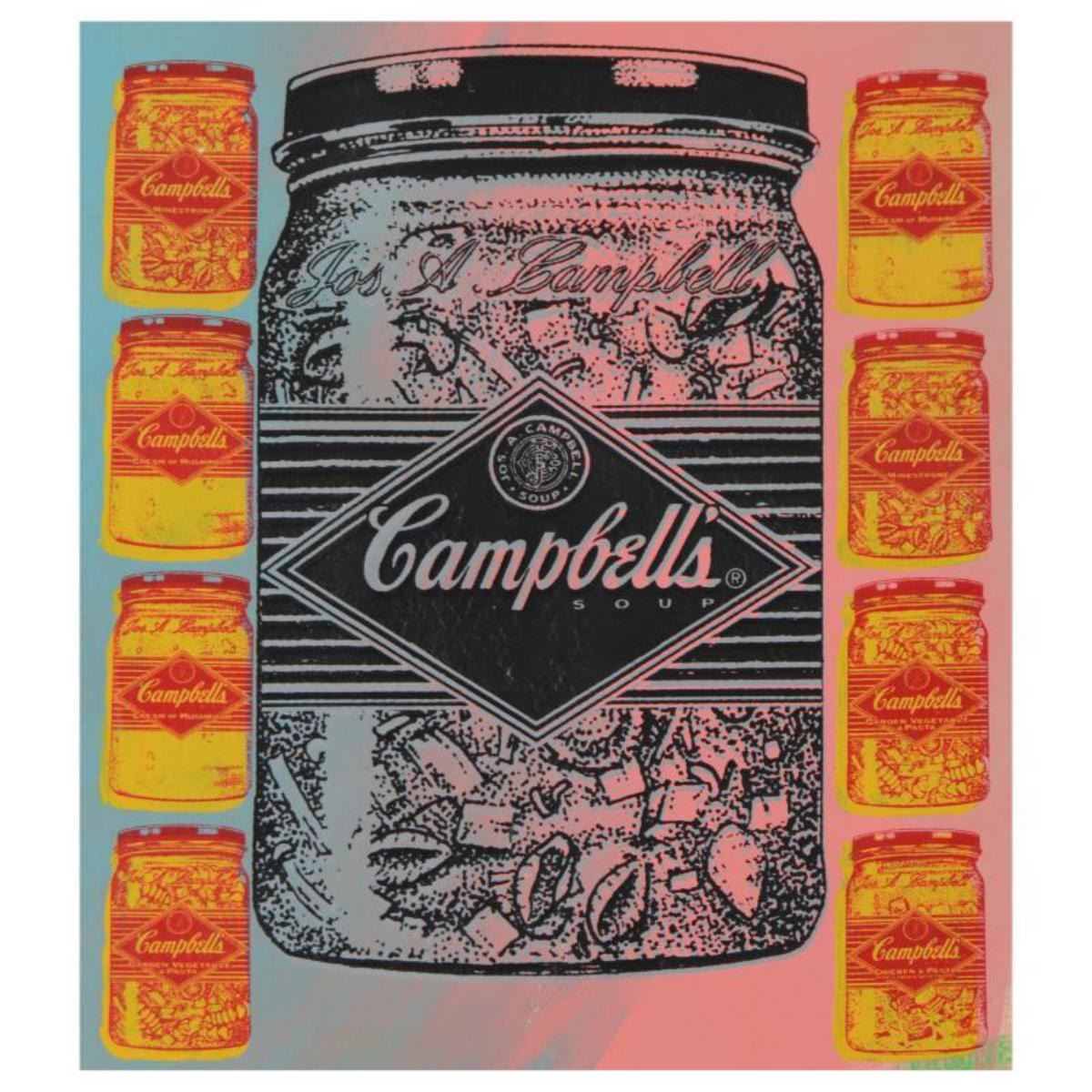 "Campbell's Soup" is a hand painted limited edition silkscreen on canvas by Andy Warhol protege Steve Kaufman (1960-2010). This piece is TP numbered 5/50 and hand signed inverso. Includes Certificate of Authenticity. Measures approx. 11" x 15" (image). Reference #: 236067