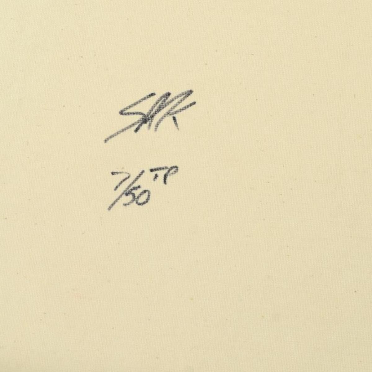 "Campbell's Soup" is a hand painted limited edition silkscreen on canvas by Andy Warhol protege Steve Kaufman (1960-2010). This piece is TP numbered 7/50 and hand signed inverso. Includes letter of authenticity. Measures approx. 11" x 15" (image). Reference #: 236069