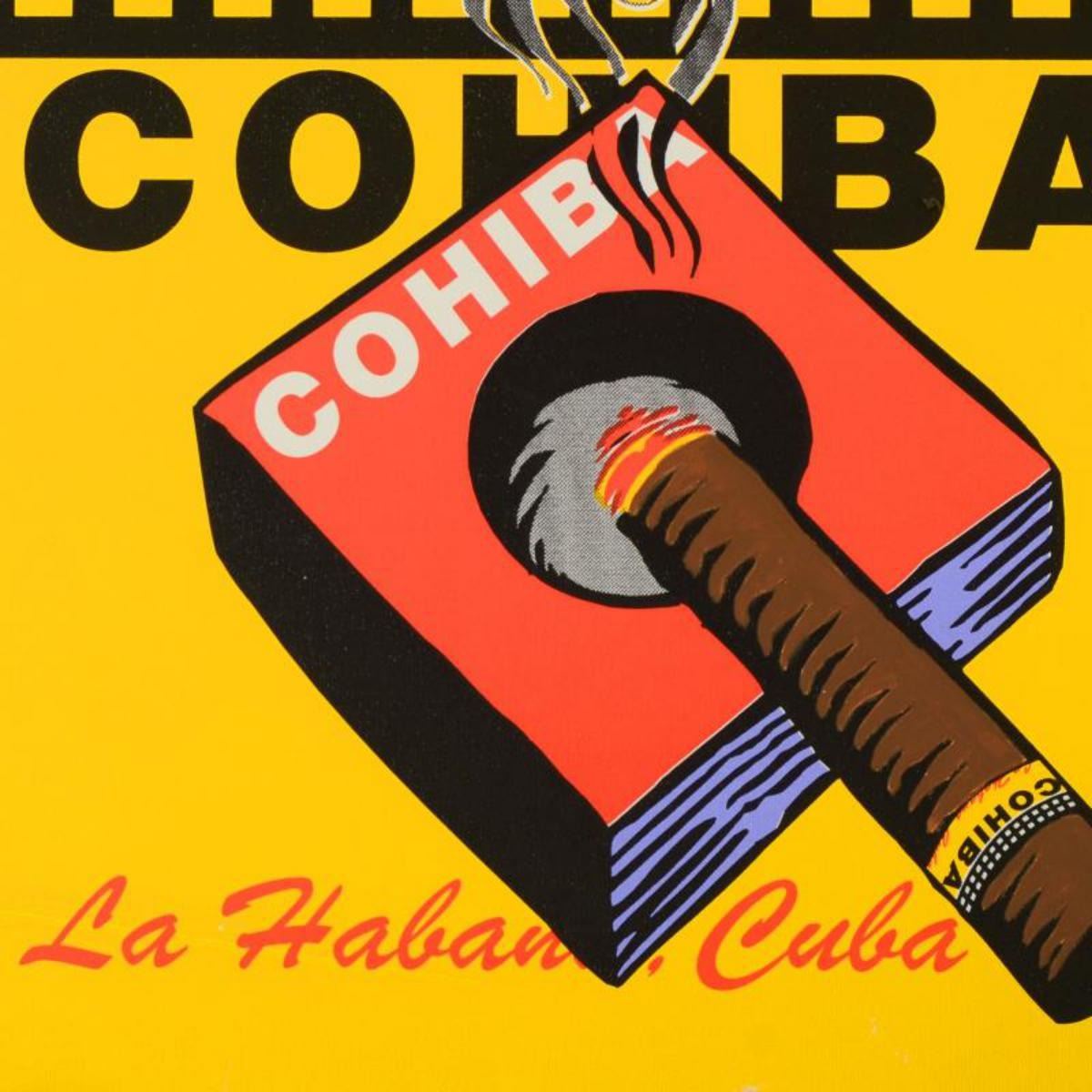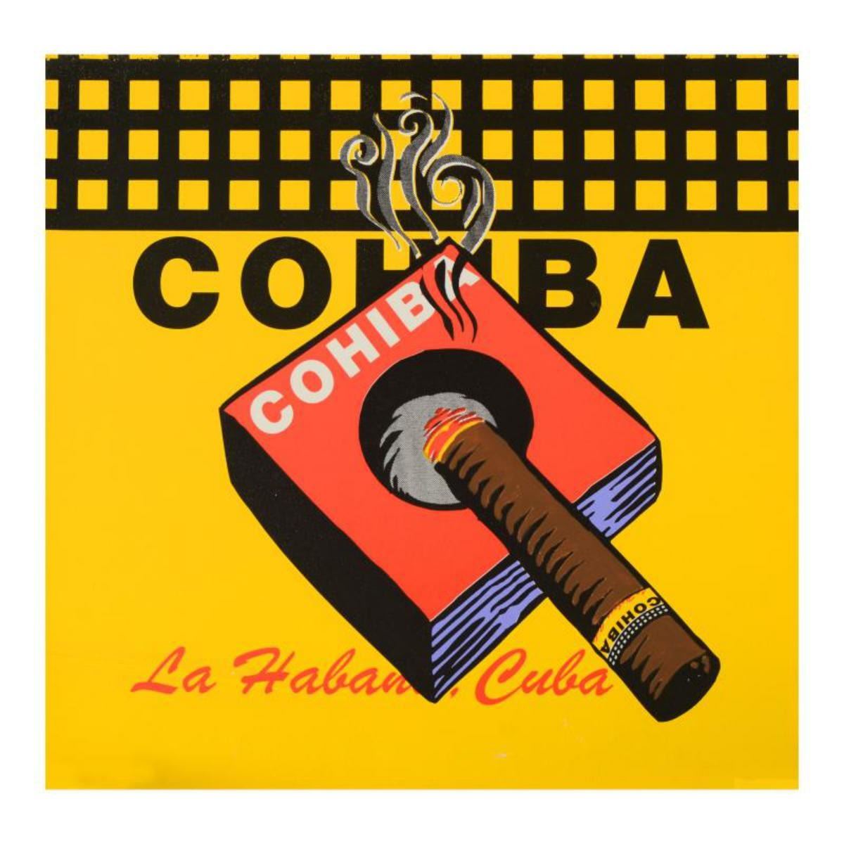 "Cohiba" is a limited edition silkscreen on canvas from an HC edition by Andy Warhol protege Steve Kaufman (1960-2010). This piece is hand signed inverso. Includes Certificate of Authenticity. Measures approx. 24" x 24" (image). Reference #: 236087