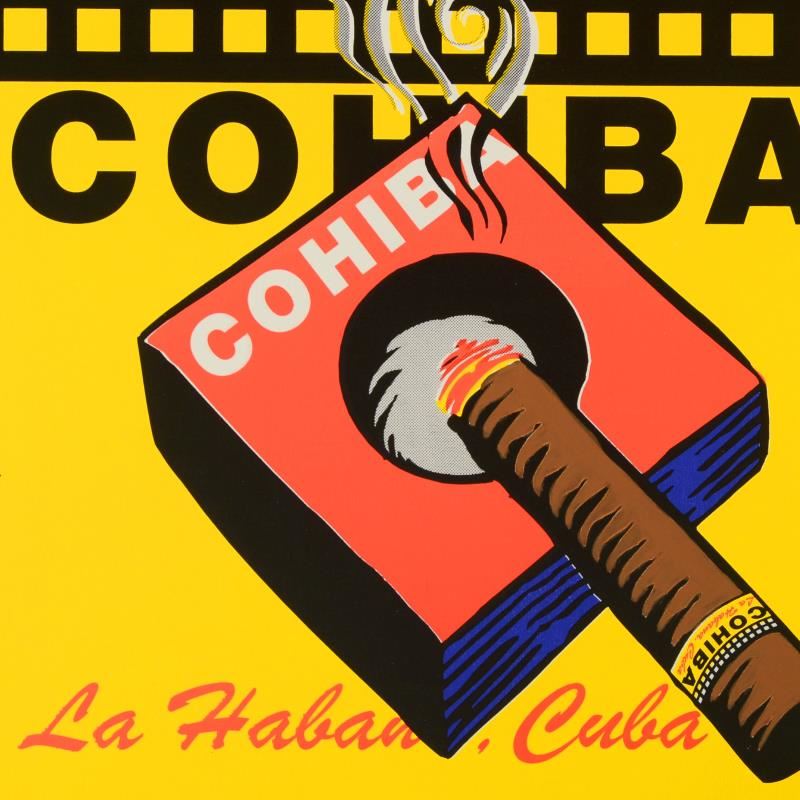 "Cohiba" is a limited edition silkscreen on canvas from an HC edition by Andy Warhol protege Steve Kaufman (1960-2010). This piece is hand signed inverso. Includes letter of authenticity. Measures approx. 24" x 24" (image).