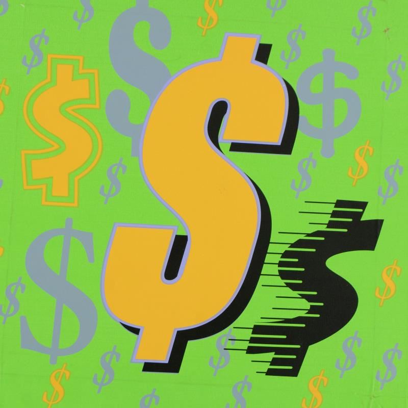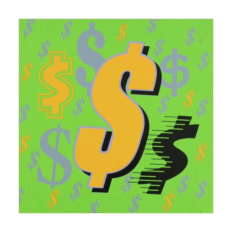 "Dollar Sign" is a limited edition hand pulled silkscreen on canvas by Andy Warhol protege Steve Kaufman (1960-2010). This piece is numbered 31/50 and hand signed inverso. Includes Certificate of Authenticity. Measures approx. 24" x 24" (image). Please no