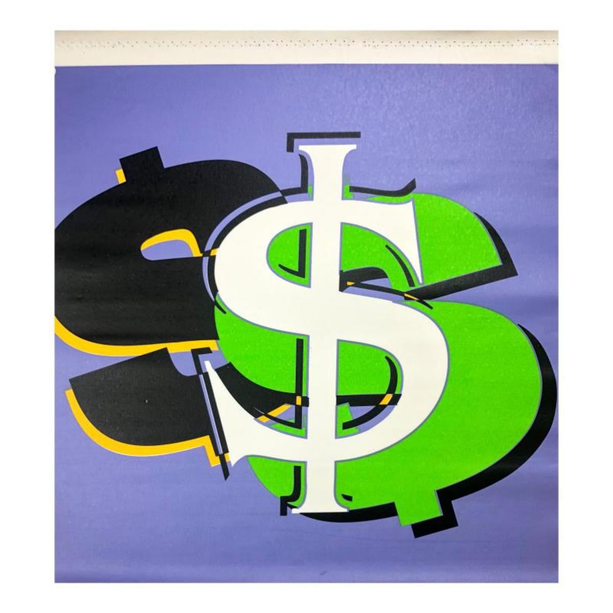 "Dollar Sign (State 2)" is limited edition hand pulled silkscreen unique mixed media on canvas by Andy Warhol protege Steve Kaufman (1960-2010). This piece is numbered and hand signed inverso and includes a letter of authenticity. As is common with Kaufman's works, this piece may have perceived minor flaws, but is in overall good condition. Measures approximately 25" x 27" before cropping. Reference #: 243503