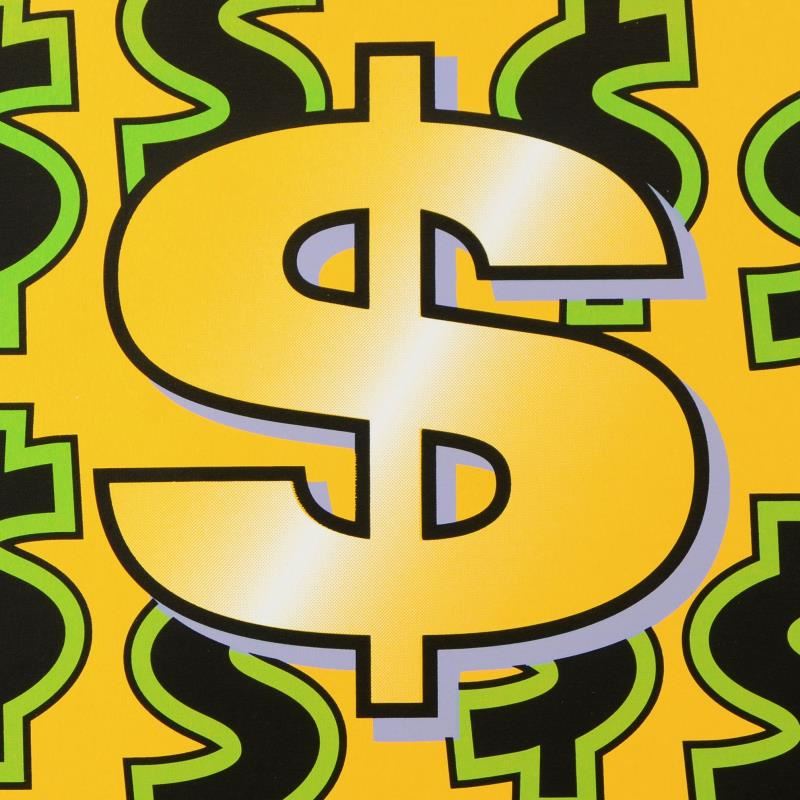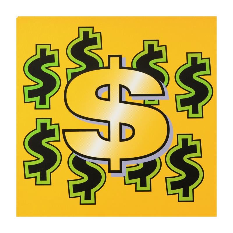 "Dollar Sign" is a limited edition hand pulled silkscreen on canvas by Andy Warhol protege Steve Kaufman (1960-2010). This piece is numbered 24/50 and hand signed inverso. Includes letter of authenticity. Measures approx. 24" x 24" (image).