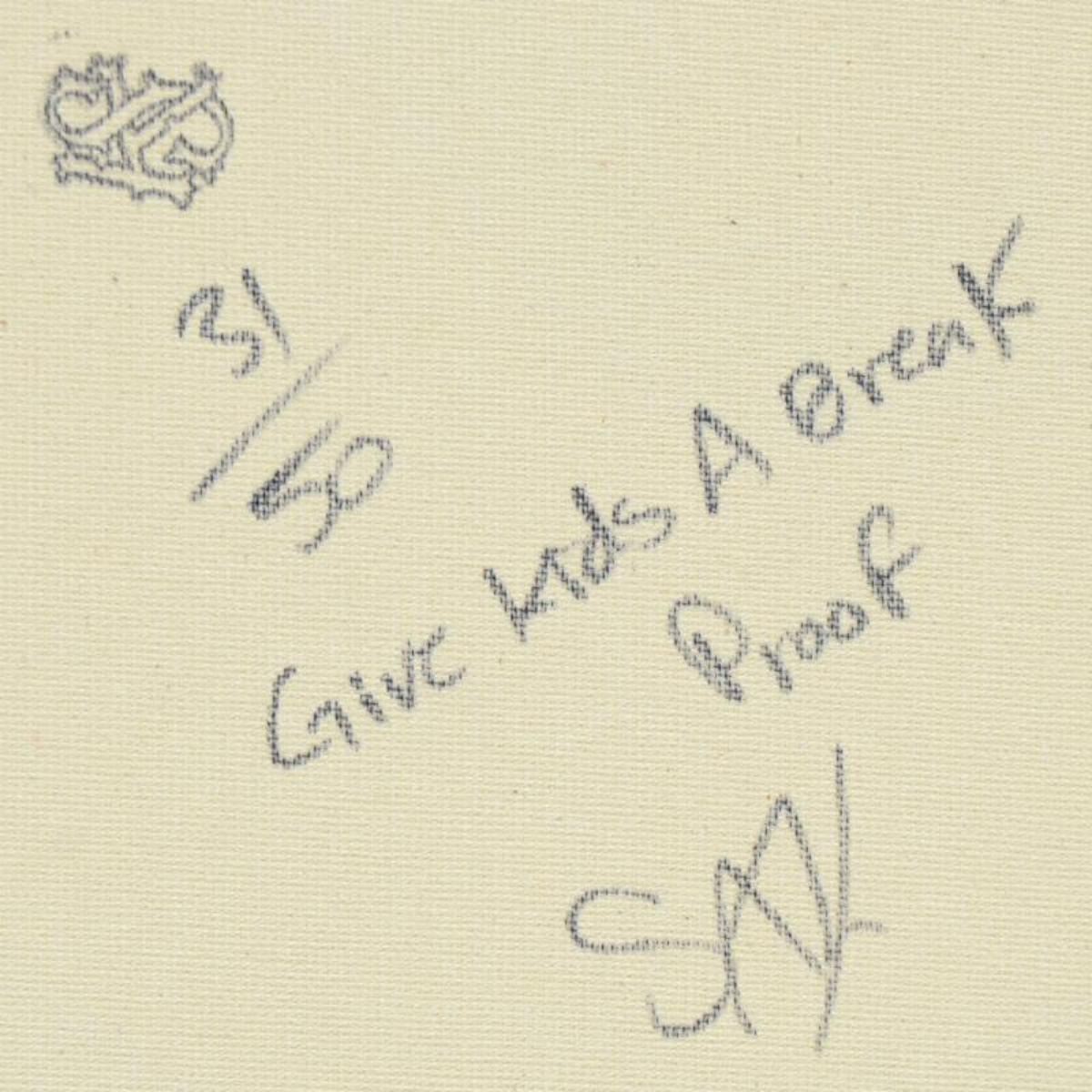"Dollar Sign" is a limited edition hand pulled silkscreen on canvas by Andy Warhol protege Steve Kaufman (1960-2010). This piece is numbered 31/50 and hand signed inverso. Includes Certificate of Authenticity. Measures approx. 24" x 24" (image). Please note: there is minor smudging on the bottom right corner that may be concealed when stretched and framed. Reference #: 238590