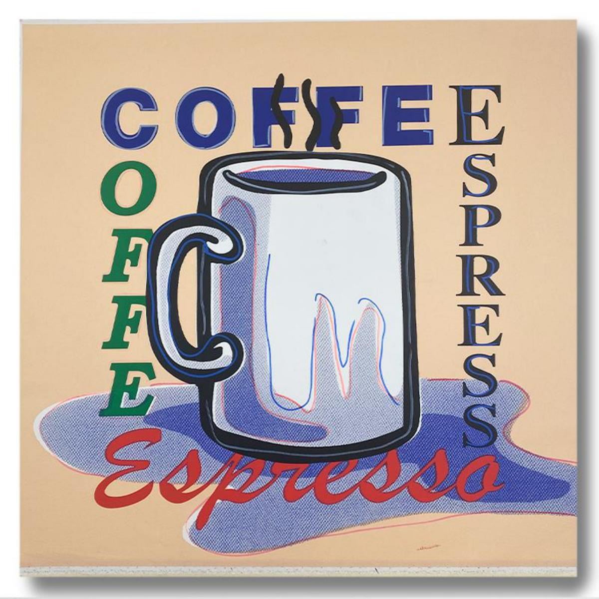 "ESPRESSO" is a limited edition hand pulled silkscreen mixed media on canvas by Andy Warhol protege Steve Kaufman (1960-2010). This piece is numbered and 15/50 and hand signed inverso. Includes letter of authenticity. As is common with Kaufman's works, this piece may have perceived minor flaws, but is in overall good condition. Measures approximately 25.5" x 25.5" (image). Reference #: 241715