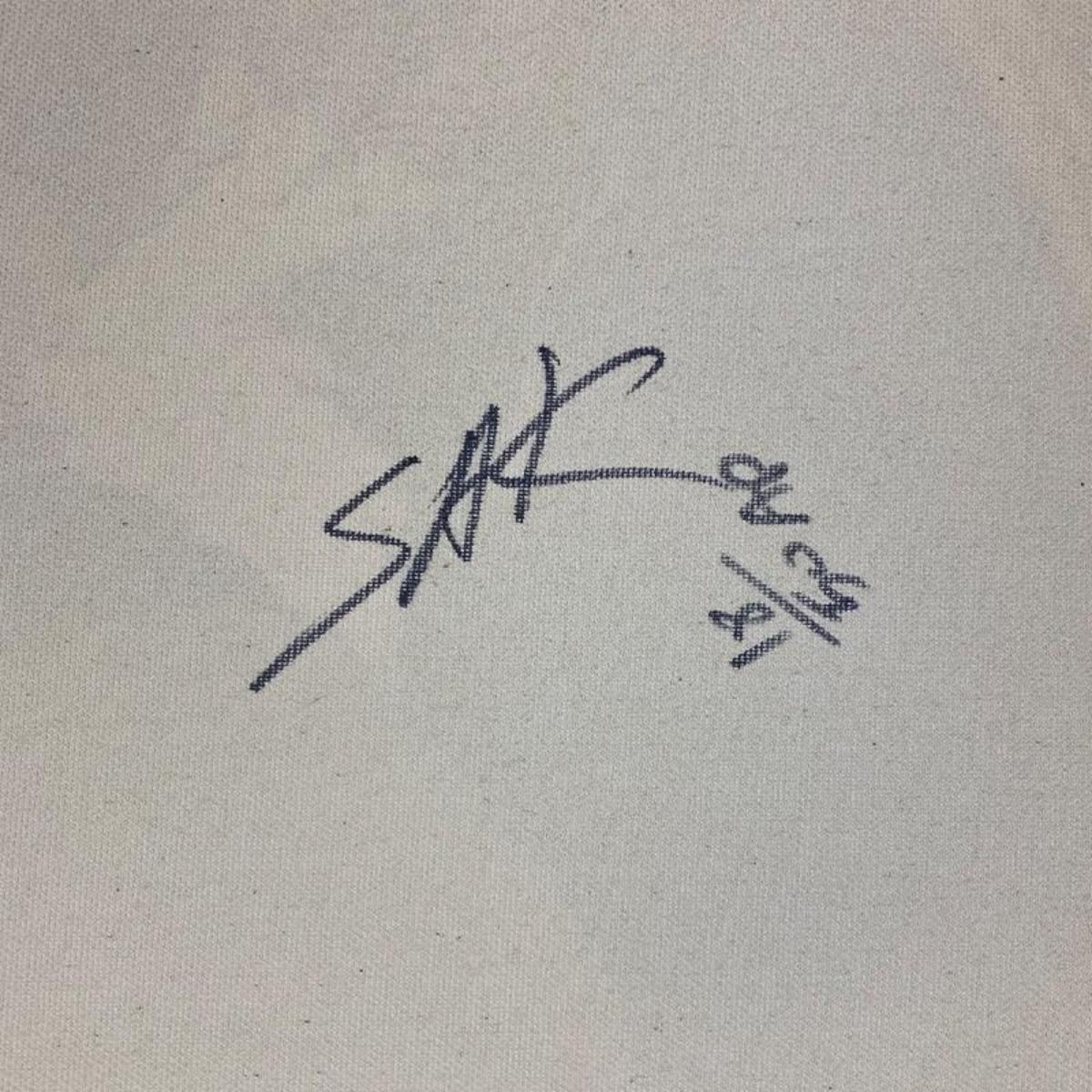 "George Washington, Father of Our Nation " is a limited edition hand pulled silkscreen mixed media on canvas by Andy Warhol protege Steve Kaufman (1960-2010). This piece is numbered and AP 18/50 and hand signed inverso. Includes letter of authenticity. As is common with Kaufman's works, this piece may have perceived minor flaws, but is in overall good condition. Measures approximately 26" x 25.5" (image). Reference #: 242049