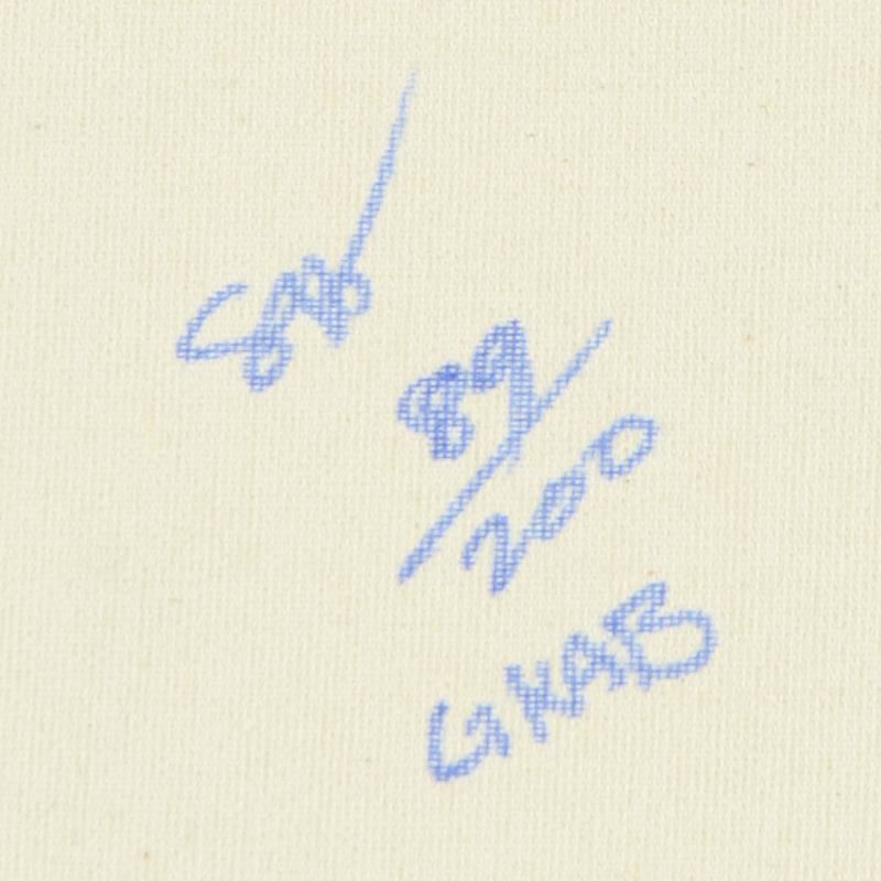 "George Washington" is a limited edition hand pulled silkscreen on canvas by Andy Warhol protege Steve Kaufman (1960-2010). This piece is numbered 89/200 and hand signed inverso. Includes letter of authenticity. Measures approx. 20" x 20" (image). There i