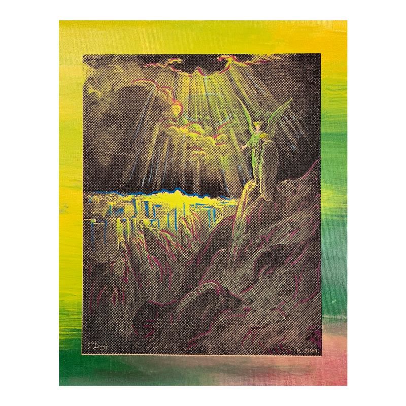 Steve Kaufman (1960-2010), "Guardian Angel" Hand Signed and Numbered Limited Edition Hand Pulled silkscreen mixed media on Canvas with LOA. "Guardian Angel" is limited edition hand pulled silkscreen unique mixed media on canvas by Andy Warhol protege Steve Kaufman (1960-2010). This piece is numbered and hand signed inverso and includes a letter of authenticity. As is common with Kaufman's works, this piece may have perceived minor flaws, but is in overall good condition. Measures approximately 17.25" x 13.25" before cropping.