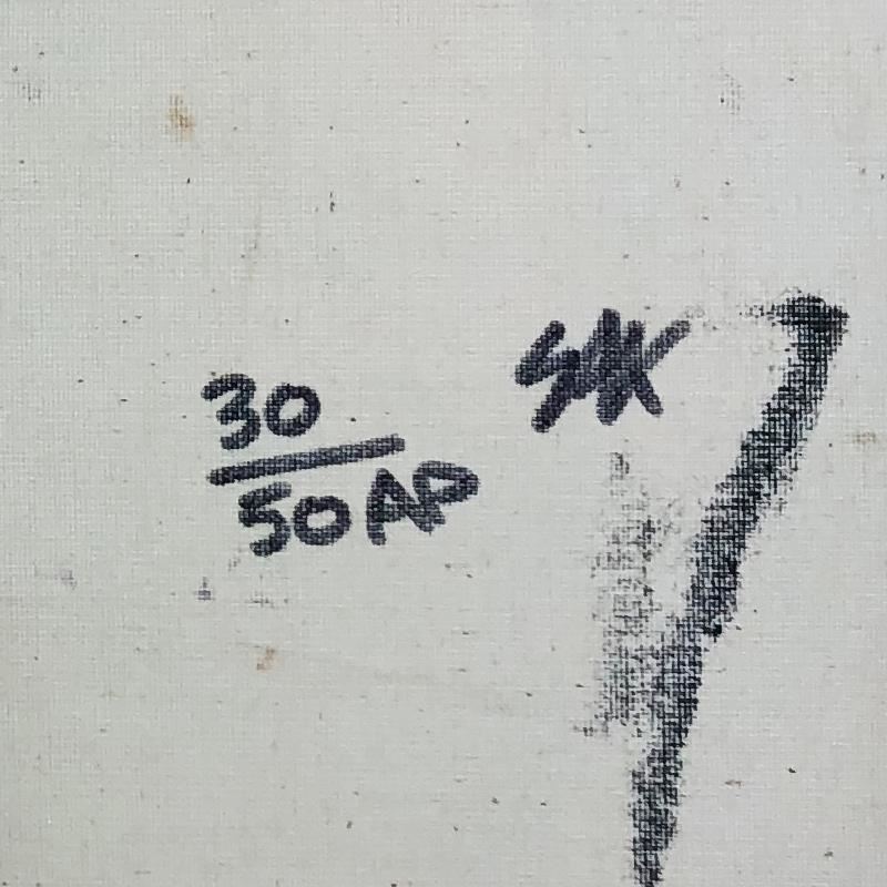 "Half Grant" is limited edition hand pulled silkscreen unique mixed media on canvas by Andy Warhol protege Steve Kaufman (1960-2010). This piece is numbered and hand signed inverso and includes a letter of authenticity. As is common with Kaufman's works,