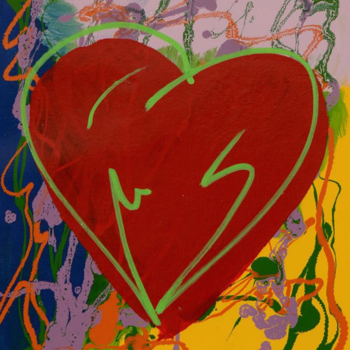 Steve Kaufman (1960-2010), "Heart" Hand Painted Limited Edition Silkscreen on Canvas, Numbered 46/40
