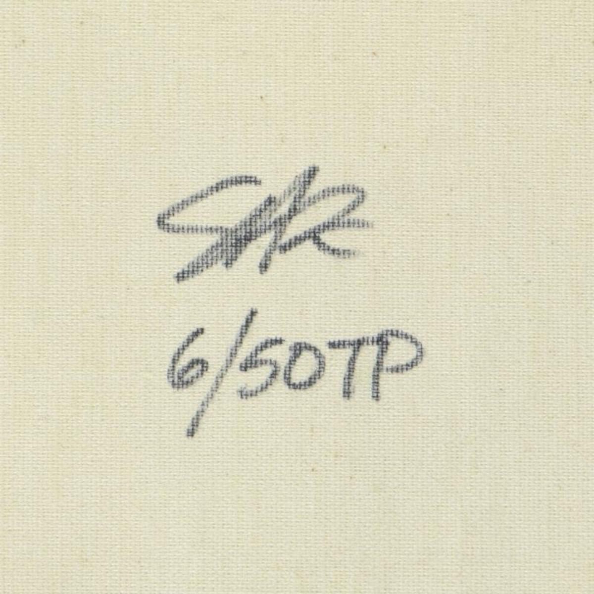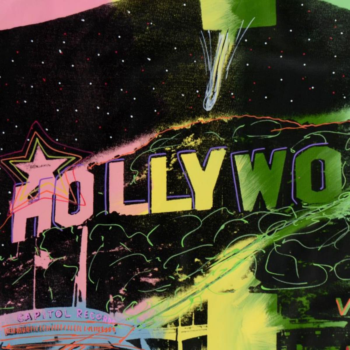 "Hollywood" is a hand embellished limited edition silkscreen on canvas by Andy Warhol protege Steve Kaufman (1960-2010). This piece is TP numbered 6/50 and hand signed inverso. Includes Certificate of Authenticity. Measures approx. 34" x 24" (image). ** Please note: there is a horizontal crease that runs from the bottom-center of the image through the right part of the word "Hollywood". ** Reference #: 238135